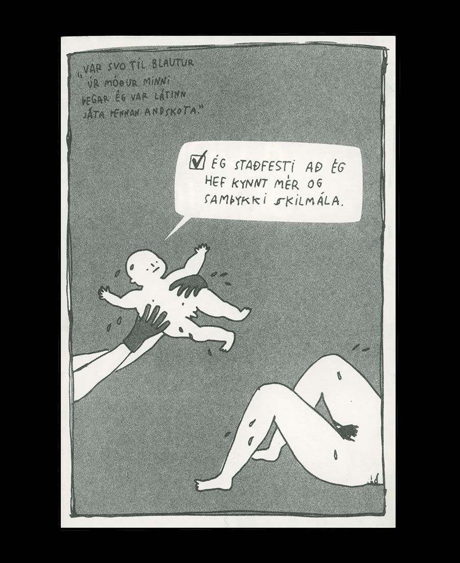 A poster and comic honoring famous icelandic protestor Helgi Hóseasson. The type used in the poster was based on Helgi's handwritten signs and the comic is inspired by a quote from an interview with Helgi in 1981. 2019