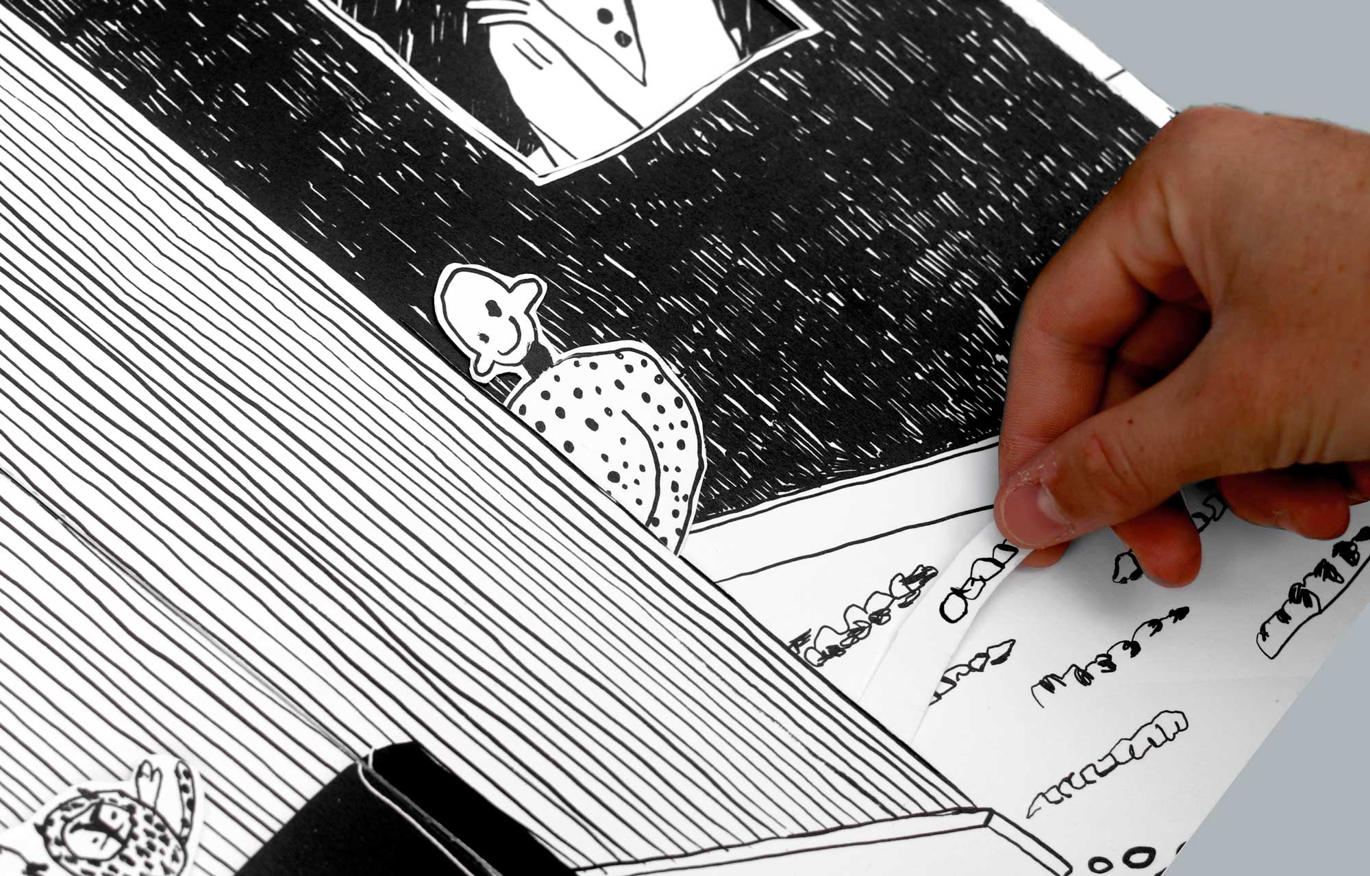 Illustrated book with interactive pop-outs, pull-tabs