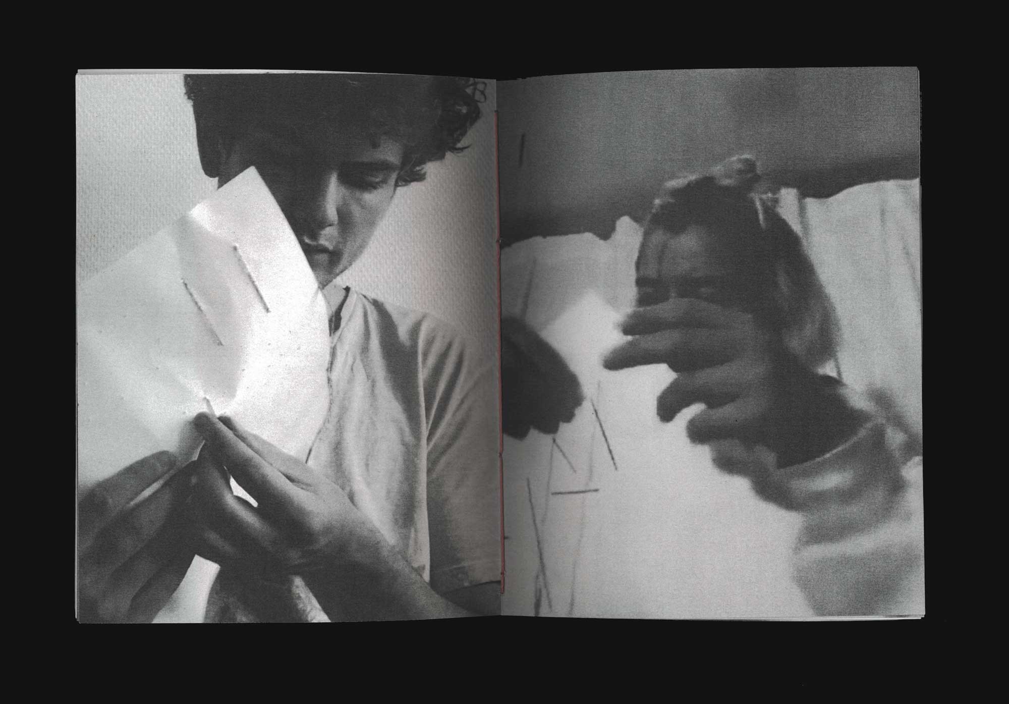 A booklet documenting two conversations with friends. Each message was revealed through the recipent sewing according to the senders instructions. 155 x 200 mm